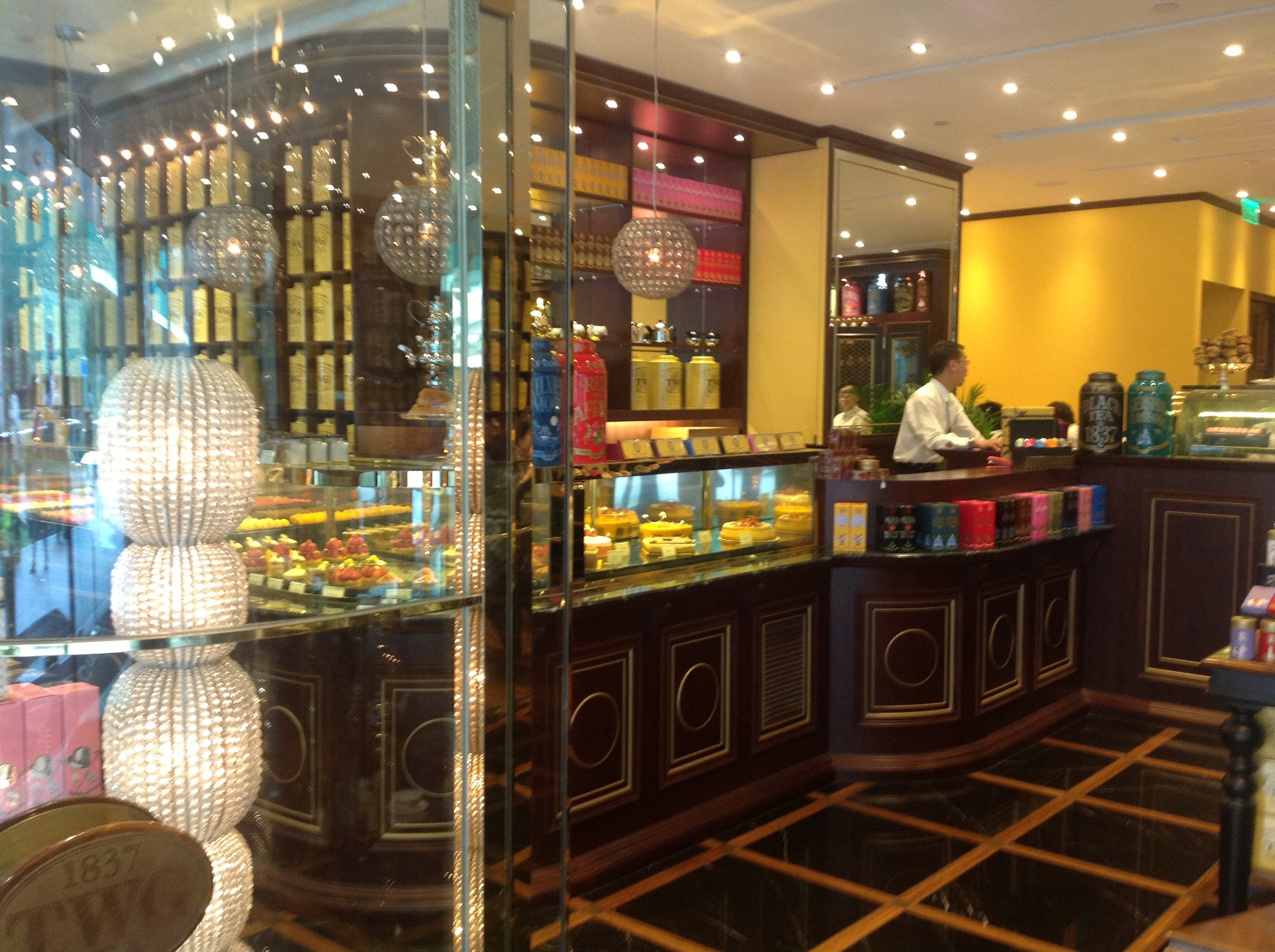 Iøvrigt skøn dag med masser af input – fantastisk vin-butik/bar – smukt! Te-butik – så fin! – afstemt i farver – også maccaronerne 🙂 – og naturligvis med te-cafe. Butik med masser af mystik udefra at se – indenfor sort og smukt interiør – med få montrer med smykker kun af jade i forskellige farver med hvidguld og diamanter.