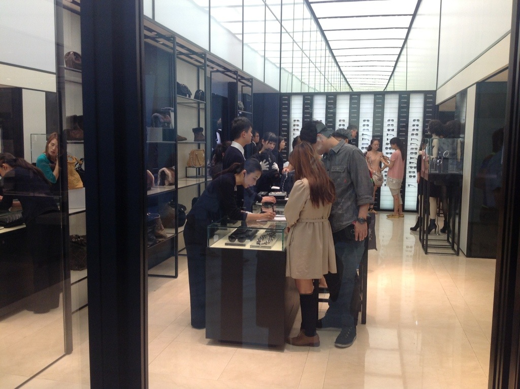 Imponerende kø foran Chanel!!! Ja, man må sig undre…. Chanel lukker kunderne ind i hold – butikken er fyldt med igangværende ekspeditioner. Det samme gælder hos Hermes. Skønt at se! Glæder mig vildt til, jeg kan filme køen foran ROOM4 Exclusive, Dk-7100!