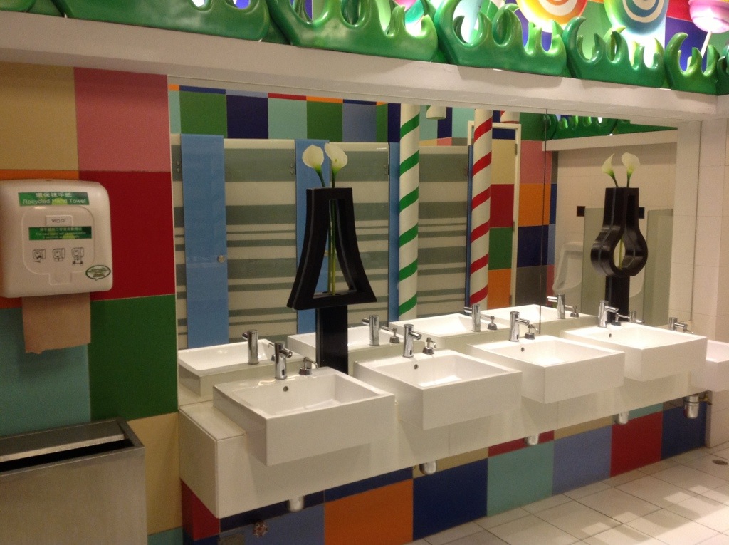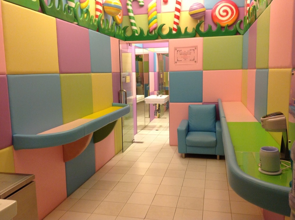 En bagside af butikken kan også være verdensklasse. Vi var i Mega Box og var i deres børneafdeling, hvor alt var gennemført, selv bagsiden. Toiletterne var nemlig ikke bare kedelige og triste som i Danmark. Her var tingene lavet i børnestørrelse og dekoreret.