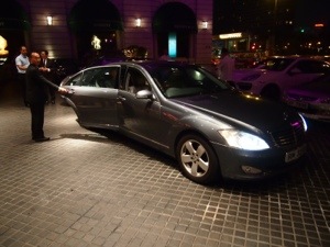 Vi blev kørt til restauranten og tilbage igen i to lækre Mercedes biler. En stor kontrast til de lokale røde taxier, der alle bærer tydeligt præg af at blive brugt.