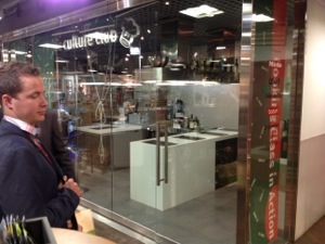 Set i City’super: Et køkken placeret i glas midt i kundestrømmen. Det er da genialt, fordi det er jo det, vi er leverandør i. Først sælger vi varerne, og bagefter holdes der kursus med en dygtig kok.