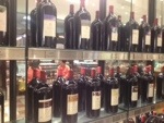 Vi blev “lokket” ind i en vinbutik i et center ved at vinduesudstillingen bestod af masser af 6 ltr. Mouton Rothchild flasker fra 1924 og frem til nu. Det viste sig så, da vi snakkede med dem i butikken, at flaskerne var tomme, men med originale etiketter. Vi spurgte, hvorfor de brugte dem i udstillingen. Og svaret var: “Vi kom jo indenfor.” 🙂 smart.