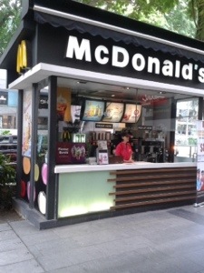 Her en McDonald’s, der tydeligt viser, at de har tænkt over deres kunders behov i forbindelse med placeringen. Denne McDonald’s fungerer som konkurrent til 7-Eleven, og serverer primært forfriskninger som drikkevarer, is og snacks. Produkter, der er to-go.