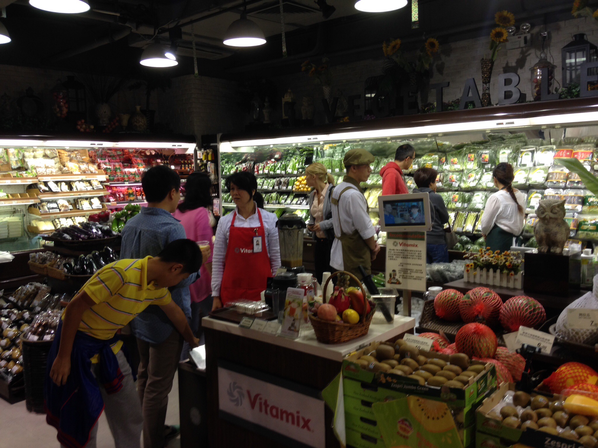 I Shanghai’s flotte dagligvarebutikker arbejdes der aktivt med oplevelser. Udover de mange som kan smages, ses og/eller føles, så er der mange fine detaljer så som dekorationer over kølere og hylder – en detalje som skaber det rette miljø for varerne, og et flot look for kunderne