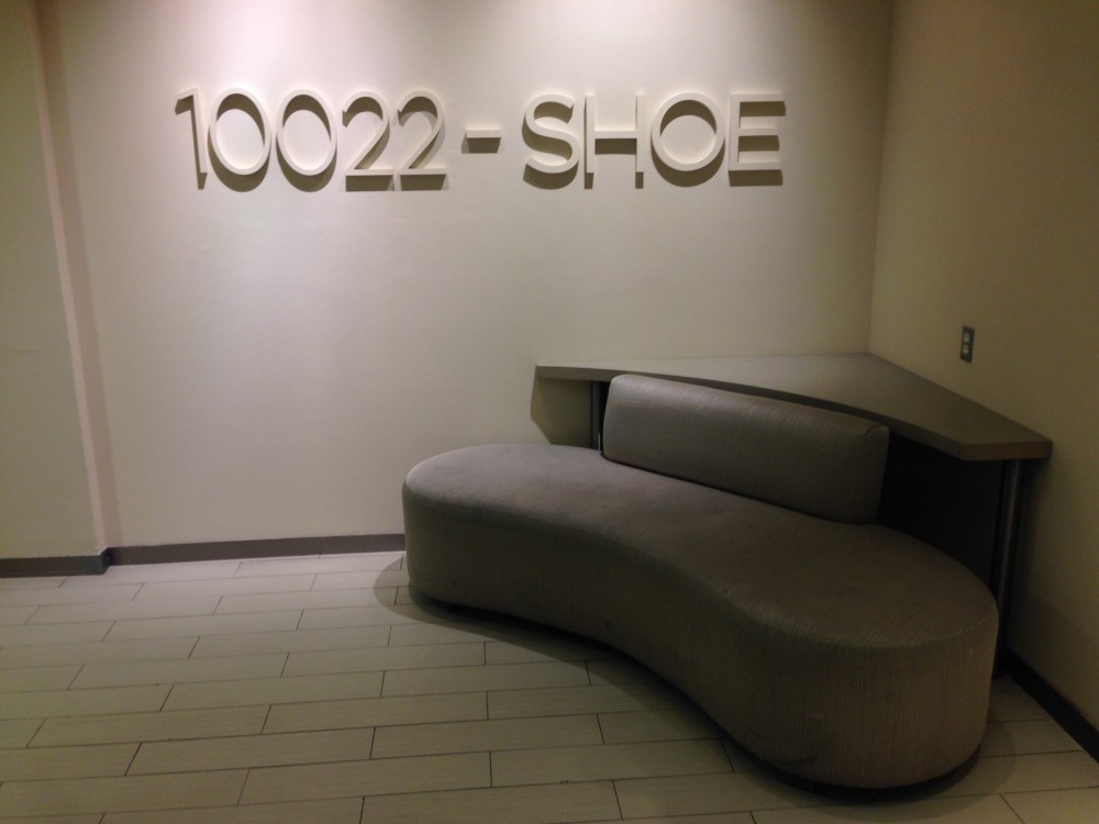 Alle der elsker sko vil have det som et barn i en slikbutik i 10022-SHOE. Man ankommer med ekspreselevator og træder ud i et 790 kvadratmeter stort lokale i varme, smukke og lyse farver. Stemningen og omgivelserne er meget luksuriøse og afslappet. Alle sko står flot fremvist og al dekoration bliver lavet ud fra, hvad dekoratøren finder attraktivt.