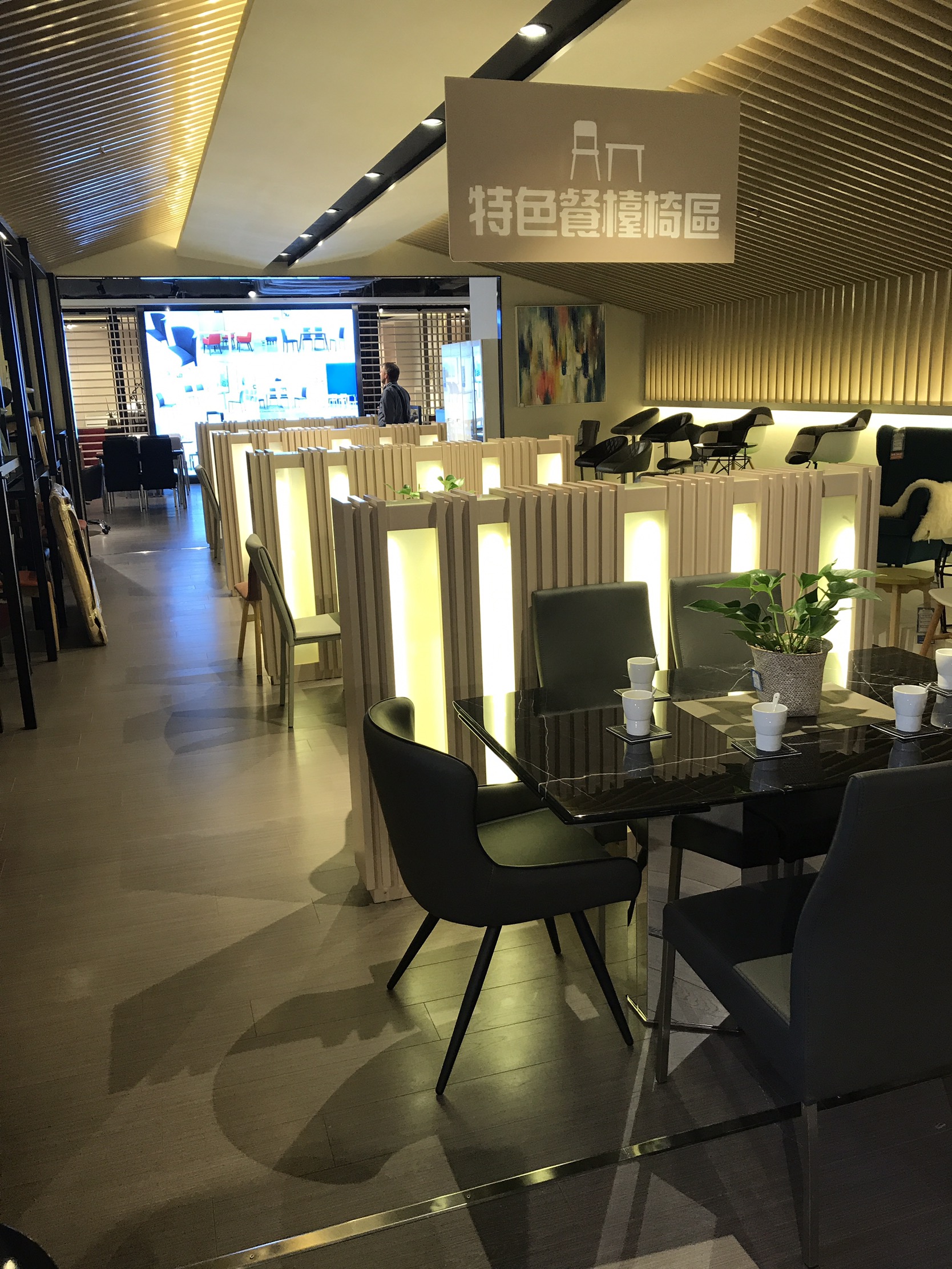 Home 21 har indbygget LED belysning i deres skillevægge, som benyttes bag de enkelte møbelprodukter. Det giver et naturligt blikfang, når man står i butikken og forsøger at danne sig et overblik over sortimentet og derudover får kvalitetsfølelsen en pil op!