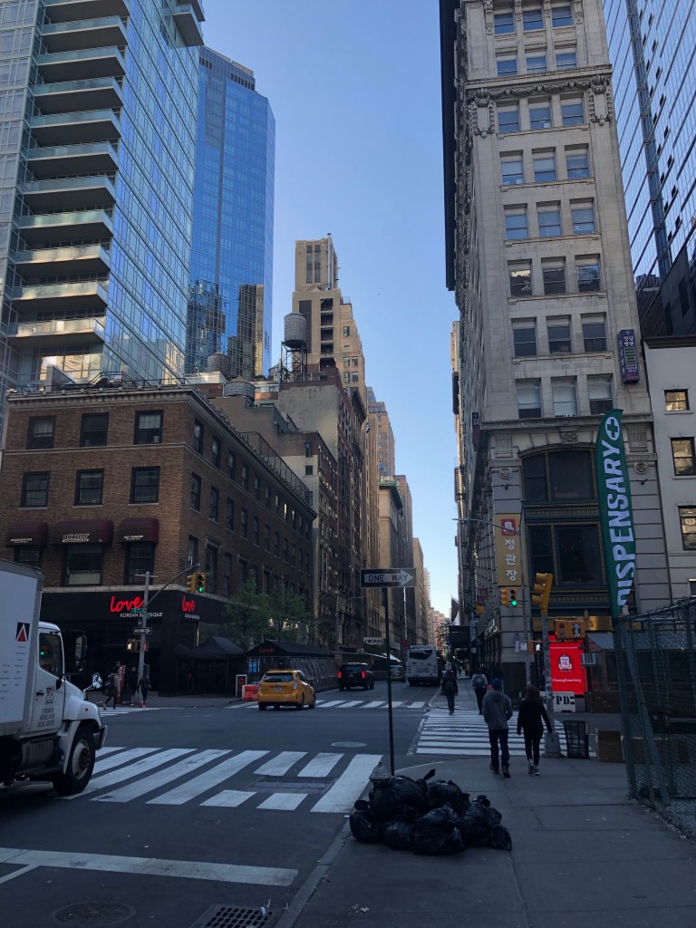 New York sover aldrig. Det er ikke en skrøne, og det gjorde jeg heller ikke med jetlag😀 En lang morgentur gennem små gader med indtryk af en storby, hvor millioner af mennesker skal have morgenkaffe og en croissant. Boder bliver stablet op med friske frugter, og selv den mindste lille asiatiske butik pudser vinduer og vasker fortorvet. Bagerier klargør dejen og vareleveringer, inden trafikken bliver alt for hektisk. Alle man får øjenkontakt siger “G’morning” Det en helt normal dag i NY, jeg er sikker på, den bliver god😀