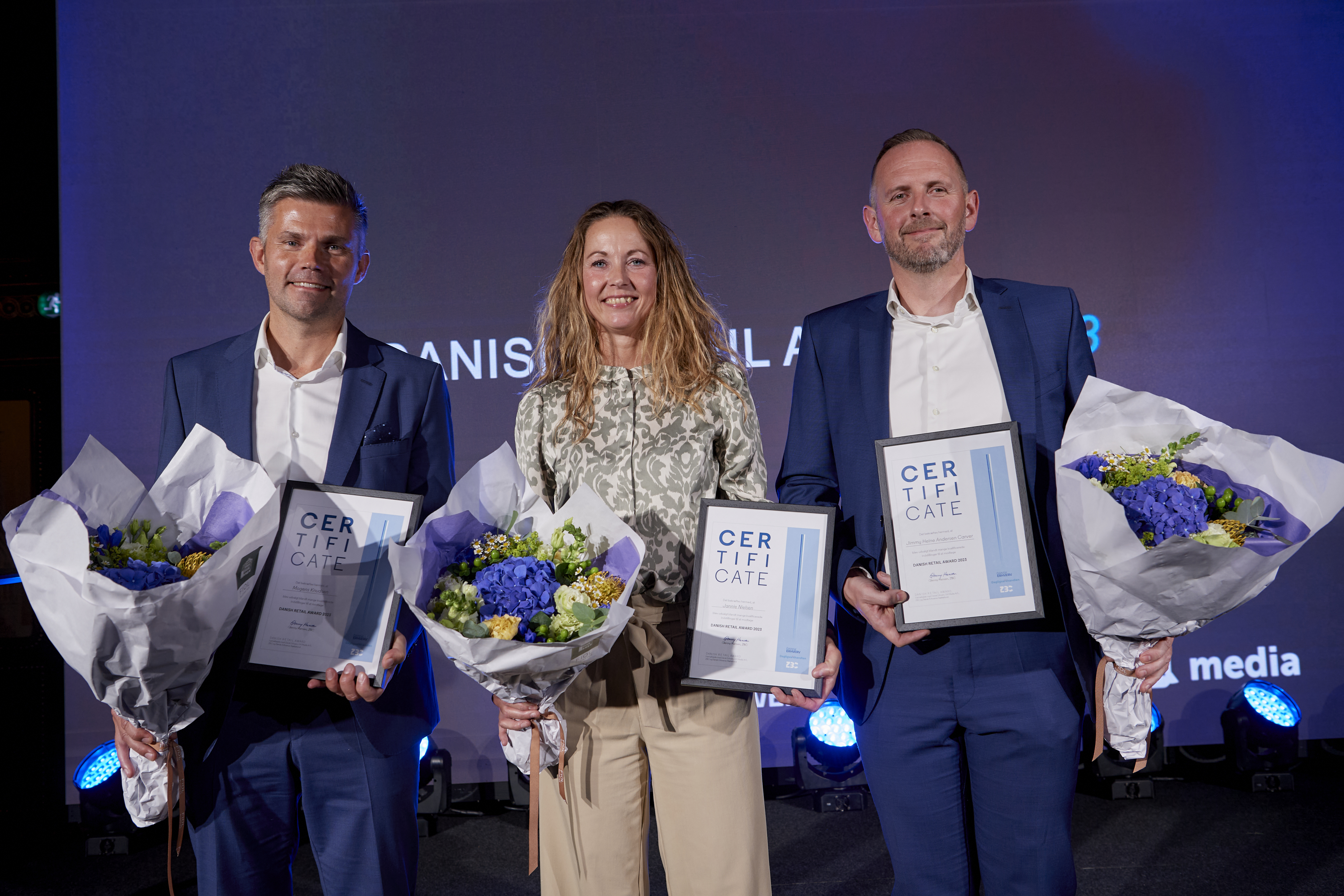 D. 2/10 2023 var en kæmpe festdag på Børsen, hvor vi fik kåret de 3 vindere af Danish Retail Award 2023. Prisen i år gik til Mogens Knudsen, direktør og uddeler i Løkken Brugsforening, Jannie Nielsen, butikschef i Normal Algade, Aalborg og Jimmy Heine Andersen Carver, varehuschef i føtex på Fisketorvet.