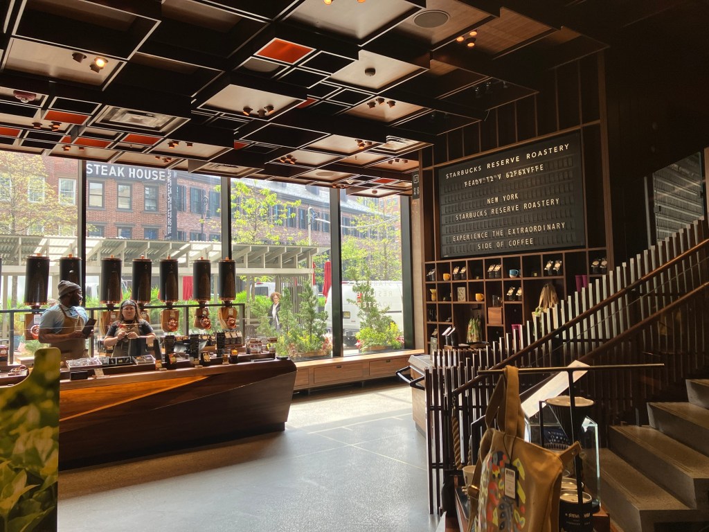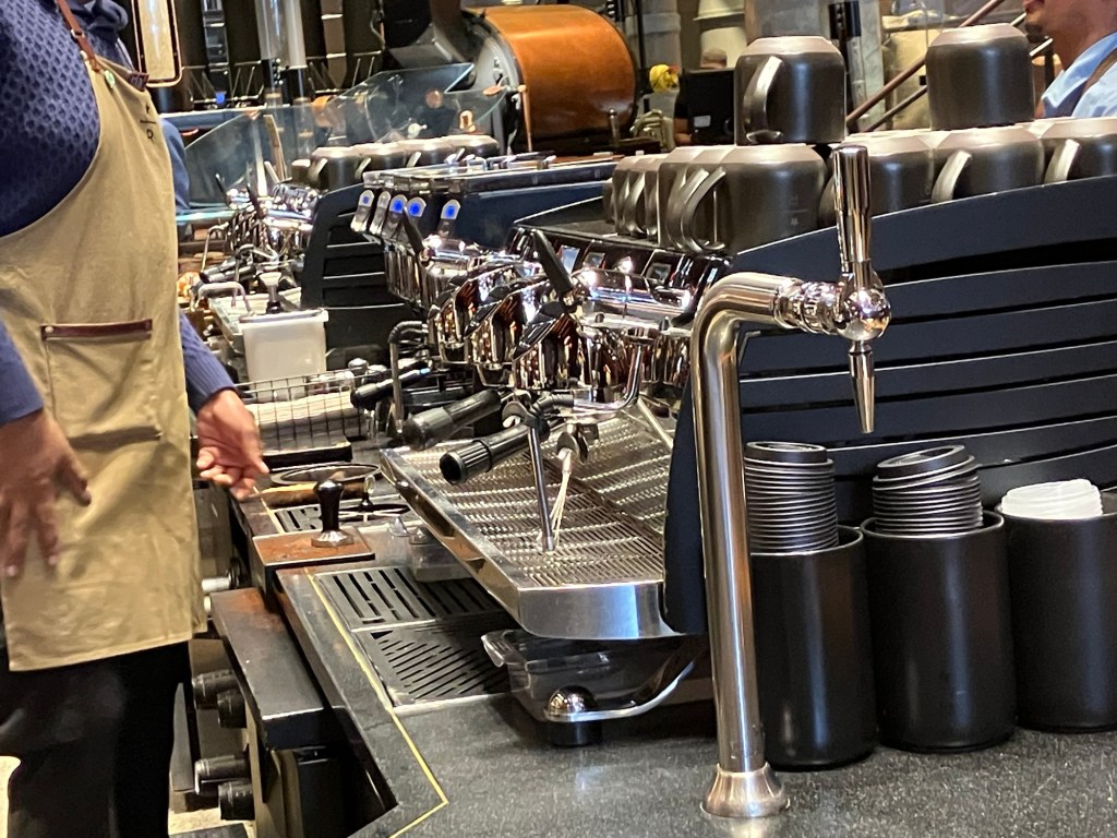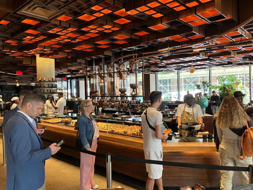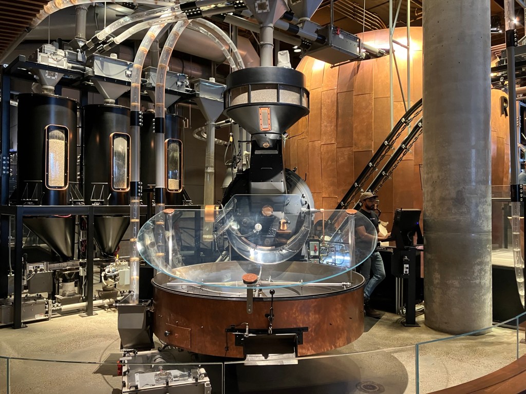 Detailhandel i verdensklasse Starbucks Reserve Roastery Skrevet af janie5bbbf906fb on maj 2, 2024maj 4, 2024 Der er lang vej fra den lille kaffebiks i Normal til denne kæmpe skude. Der er risteri i selve butikken og hele tre kæmpe stationer med kage og kaffe i utallige variationer. En stor oplevelse! Del dette: Click to share on X(Åbner i et nyt vindue) X Klik for at dele på Facebook(Åbner i et nyt vindue) Facebook Mere Klik for at dele på LinkedIn(Åbner i et nyt vindue) LinkedIn Like Henter...