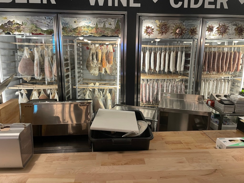 Modningsskabe til eget pølsemageri, hvor man havde valgt, at udstille produkterne under hele modningsprocessen.